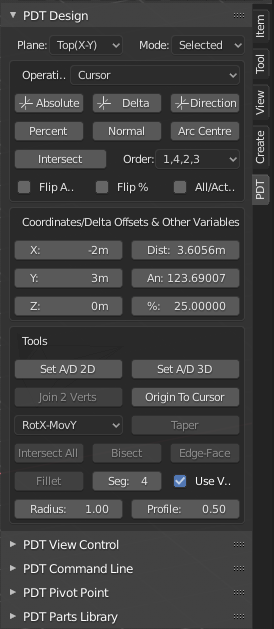 Only one PDT menu (Design) is shown as expanded, by default all menus are expanded when the add-on is loaded.