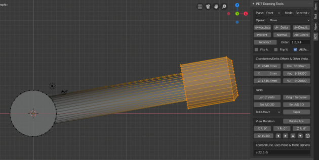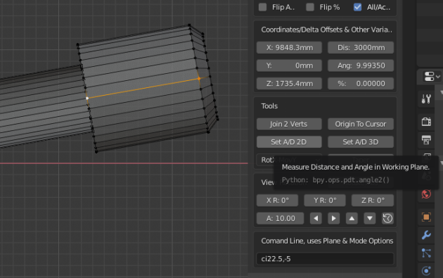 You can see the selected vertices have been moved exactly 3000mm at exactly 9.9935 degrees. This is one of the main reasons why PDT exists, to do just this type of precise alteration of geometry.