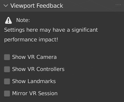 The VR Scene Inspection add-on exposes and extends the native virtual reality features of Blender in the user interface. The feature set is limited to scene inspection use cases. More advanced use cases may be enabled through further development inside of Blender.