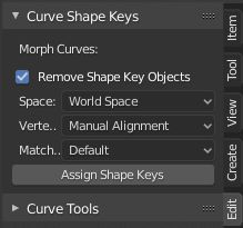 This add-on lets you assign one or more Bézier curve(s) as shape keys to other curve. Useful for morphing curves and curve based text objects.