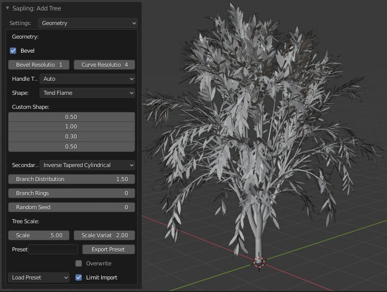 Click Add Curve then Sapling Tree Gen to enable the script.
