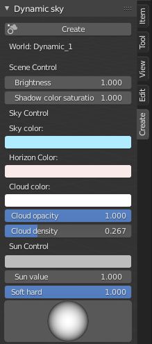 Dynamic_1in the World data-block menu.Back in the Sidebar panel you will have new settings to adjust your sky. You can also adjust the world settings in the Shader editor.