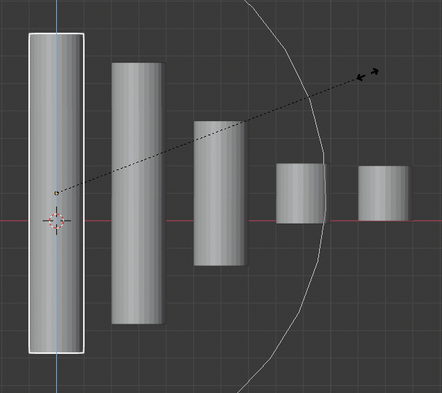In the image below, the leftmost cylinder is being scaled up vertically, which also affects the cylinders near it.