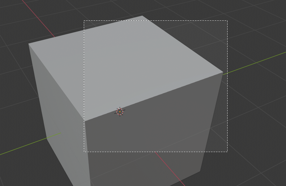 The Region/Volume clipping image shows an example of using the clipping tool with a cube. Start by activating the tool with Alt-B. This will generate a dashed cross-hair cursor. Click with the LMB and drag out a rectangular region. Now clipping is applied against that region in 3D space. Use the MMB to rotate the view and you will see that only what is inside the clipping volume is visible. All the editing tools still function as normal, but only within the clipping volume.