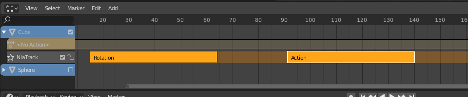 Action Strips are a container of keyframe data of an action. Any action used by the NLA first must be turned into an Action strip. This is done so by clicking the Push Down Action button see above. Alternatively, you can go to .