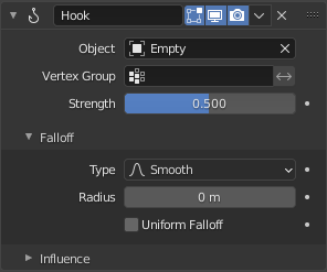 This documentation refers to the Hook Modifier specific to the Grease Pencil object. For uses with other object types refer to the general Hook Modifier.