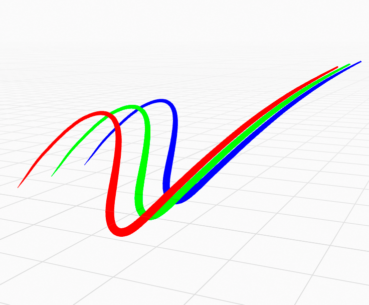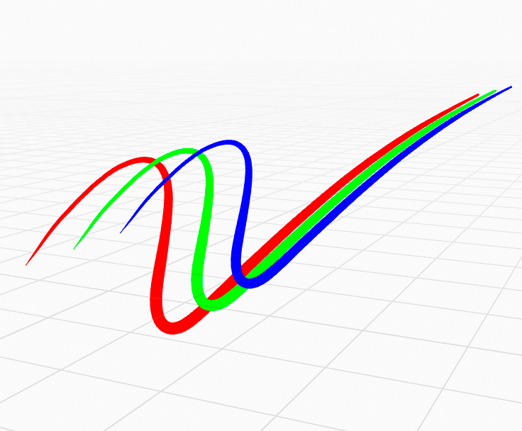 Blue, Green and Red strokes in three different layers using 3D Location depth order.