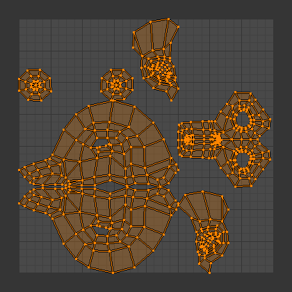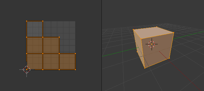 Cube Projection maps the mesh onto the faces of a cube, which is then unfolded. It projects the mesh onto six separate planes, creating six UV islands. In the UV editor, these will appear overlapped, but can be moved. See Editing UVs.