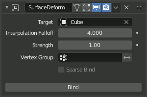 Once the mesh is bound, the Bind button changes to Unbind. Executing this frees the modified mesh from the target, and resets it to its original shape.