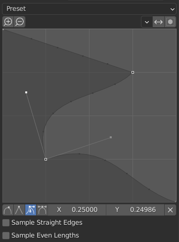 This widget allows the creation of a user-defined profile with more complexity than with the single profile parameter. The modal tool allows toggling the custom profile, but the shape of the profile is only editable in the options panel after the operation is confirmed.