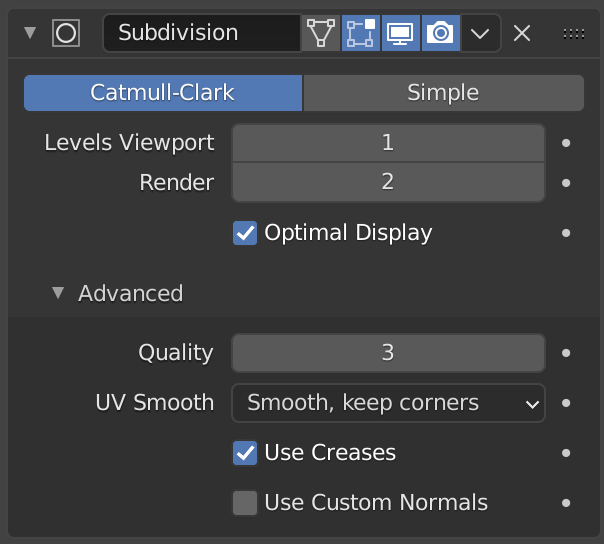 Subdivides and smooths the surfaces to create a more pleasant looking mesh. According to its Wikipedia page, the “arbitrary-looking formula was chosen by Catmull and Clark based on the aesthetic appearance of the resulting surfaces rather than on a mathematical derivation.”
