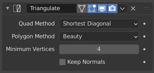 Minimum number of vertices a face must have to be triangulated. For example, setting this value to 5, will prevent triangulation of Quads and only triangulate N-gons.