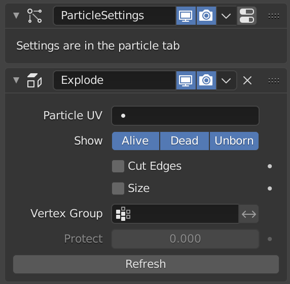 Vertices in this group may not be affected by the Explode modifier. Vertices with full weight are not affected at all, while vertices with less weight have a higher chance of being affected.