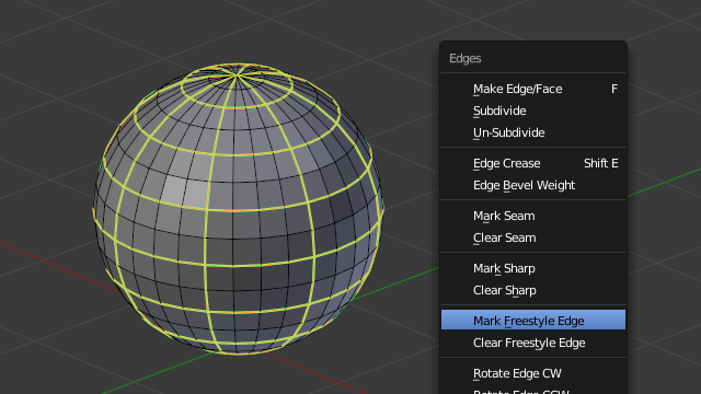 Marking Freestyle Edges in Edit Mode; the edge marks are highlighted in green.