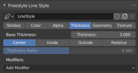 Controls the thickness of the Freestyle strokes.